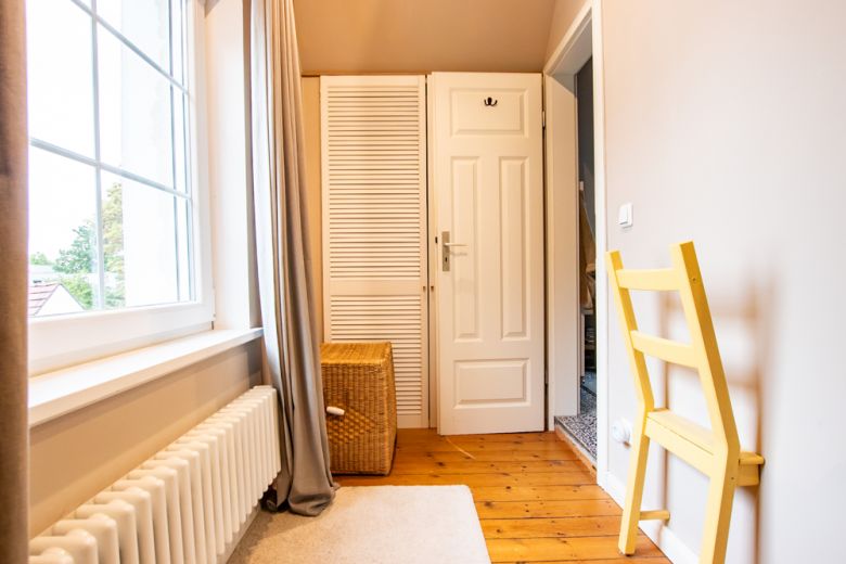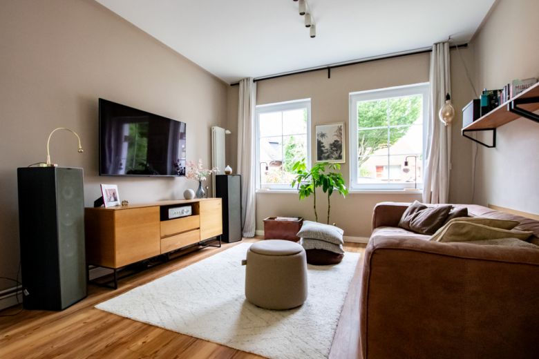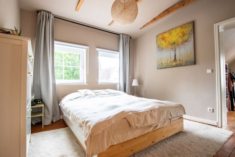 Im Inneren erwartet Sie eine gelungene Verbindung aus Altbauflair und modernen Akzenten. In der Küche kochen Sie mit Blick in den Garten – für alle, die gern in heller, freundlicher Atmosphäre arbeiten. Im Wohnzimmer besteht zudem die Möglichkeit, einen Kaminofen anzuschließen, der an kalten Tagen für zusätzliche Gemütlichkeit sorgt.