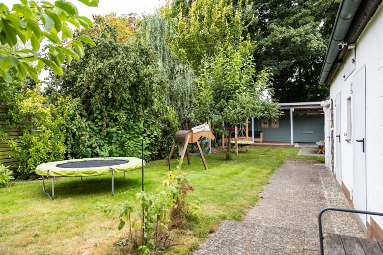 Der schön eingewachsene Garten schafft eine grüne Oase – hier genießen Sie Privatsphäre und Natur mitten in der Stadt. Zwei Terrassen im hinteren Gartenbereich, davon eine überdacht, laden zum Entspannen, Grillen oder Verweilen mit Freunden und Familie ein.