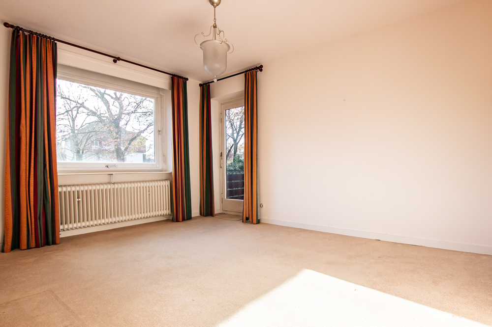 Im Obergeschoss erwarten Sie drei gut geschnittene Zimmer sowie ein Vollbad. Ein überdachter, sonniger Balkon – von zwei Zimmern aus begehbar – erweitert den Wohnkomfort und bietet einen idyllischen Blick ins Grüne.