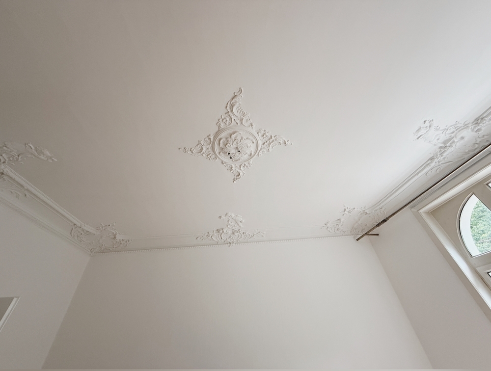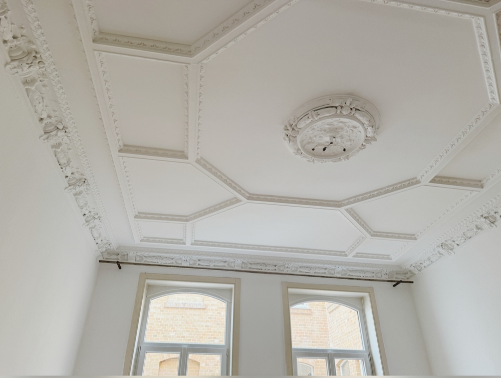 Originale Stuckelemente mit liebevollen Verzierungen.Hochwertige Holzdielenböden.