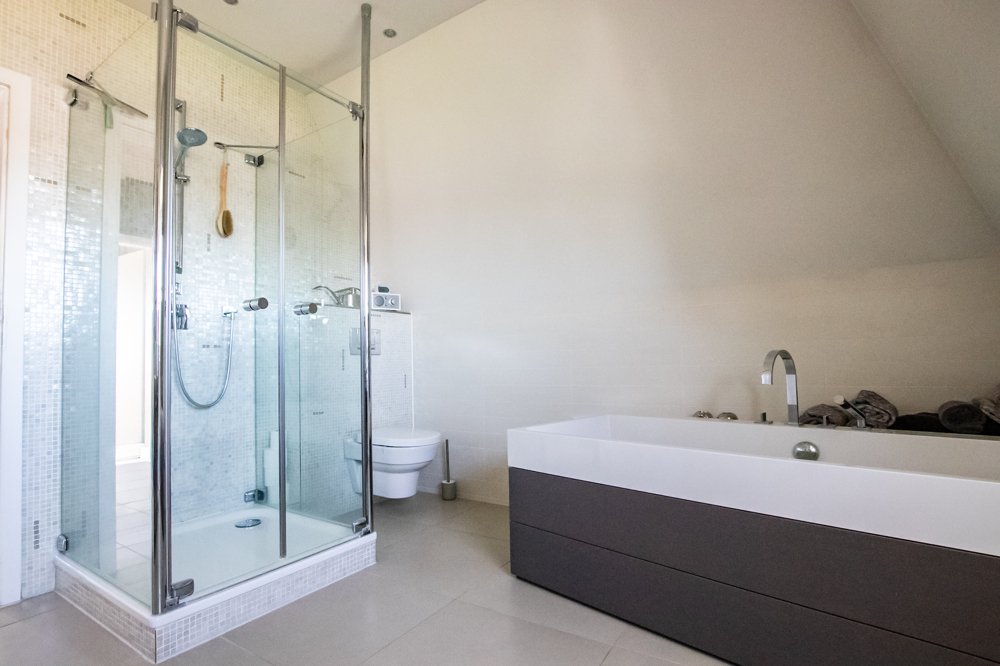Das Erdgeschoss bildet den Mittelpunkt des Hauses. Großzügige Fensterflächen sorgen für viel Tageslicht und unterstreichen die offene, freundliche Atmosphäre. Zwei Terrassen erweitern den Wohnraum ins Freie: Eine ist direkt vom Wohn- und Essbereich aus zugänglich, die zweite schließt an die Küche an. Die im gesamten Erdgeschoss verlegte Fußbodenheizung trägt zusätzlich zu einem angenehmen Wohnkomfort bei.